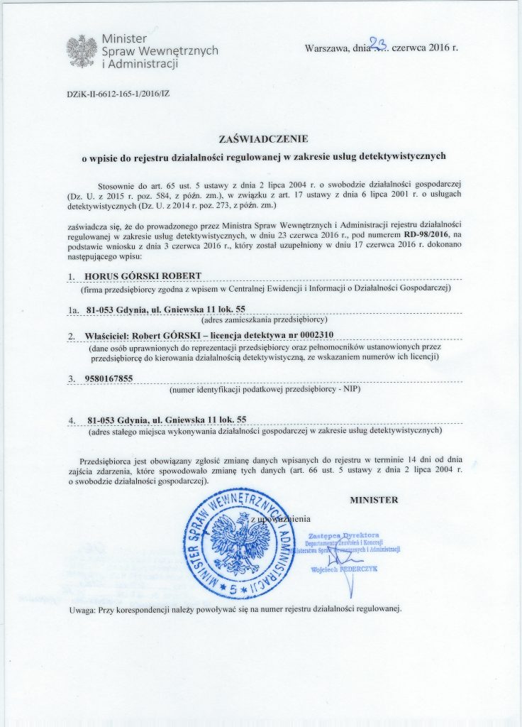 Jesteśmy koncesjonowaną agencją detektywistyczną.